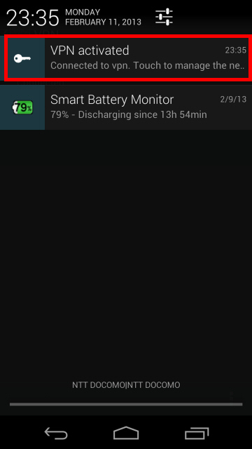 连接设置旁,安卓的状态指示区将显示 "VPN activated"